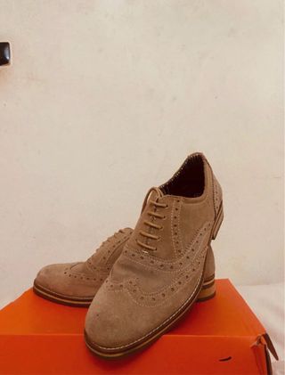Elegantes zapatos de vestir para hombre, con un diseño clásico y sofisticado. - Material exterior de ante. - Detalle de picado decorativo. - Cordones para ajuste. - Suela de goma.
