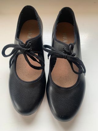 Zapatos de claqué marca Bloch, modelo Techno Tap, talla UK 5 (equivalente a EU 38). Usados únicamente en clases. Placas metálicas originales en perfecto estado y bien fijadas. Suela y estructura en muy buen estado. Presentan ligeras marcas en la puntera por el uso normal en suelo de estudio (solo estético, no afecta al sonido ni al rendimiento). Incluyo bolsa de tela para guardarlos. Ideales para estudiantes de claqué o nivel intermedio.