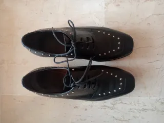 Zapatos Wonders piel negros cordones tachuelas