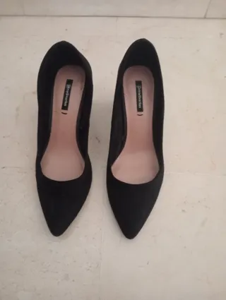 Elegantes zapatos de tacón de ante. - Color negro. - Marca Stradivarius. - Diseño de punta fina.