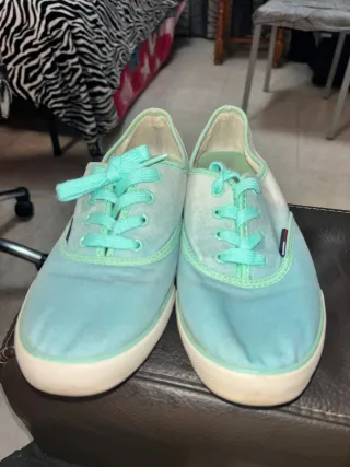 Zapatos casuales de Tommy Hilfiger en un bonito tono verde azulados - Diseño de lona. - Cordones a juego. - Detalle de logo en el lateral. -usados un par de veces.