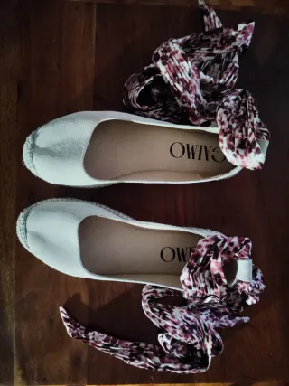 Zapatos de cuña de la marca Stradivarius. - Diseño de tejido gris. - Talla 38.
