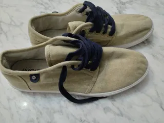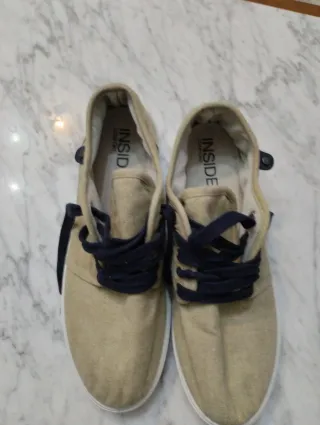 Zapatos casuales de la marca INSIDE en color beige. - Diseño de lona. - Cordones azul marino. - Suela blanca.