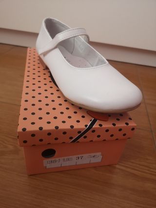 Vendo estas bailarinas de comunión de la marca Bass10 compradas en El Corte Inglés, talla 36. Tiene un pequeño roce en la puntera del pie izquierdo