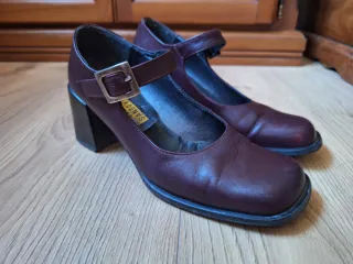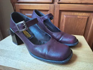 Zapatos de piel con diseño Mary Jane, en tono burdeos, perfectos para añadir un toque sofisticado a tu atuendo. Cierre con hebilla metálica Tacón cuadrado alto, pero cómodo Interior y exterior de piel. Usados y con algunos roces por el uso, pero en miy bue estado todavía.
