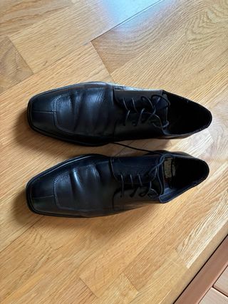 Elegantes zapatos de vestir NUEVOS (sin estrenar) comprados hace un mes Costaron 120€ - Color negro. - Talla 40. - Cierre de cordones. - Diseño clásico con puntera reforzada.