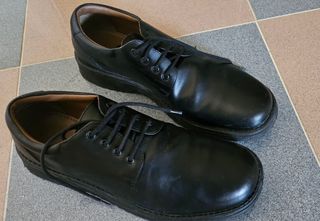 Zapatos negros con suela de plataforma gruesa. - Diseño tipo Oxford. - Cierre de cordones. - Material de ante.