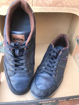 Zapatos deportivos de la marca Senda. - Color azul marino y detalles en marrón. - Cierre con cordones. - Diseño casual y cómodo.