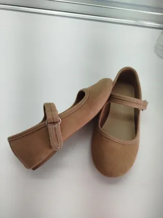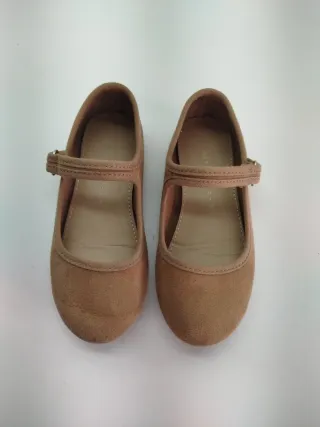 Zapatos planos de Lefties en color beige y marrón. Talla 28 - Diseño con tira. - Material tipo ante.
