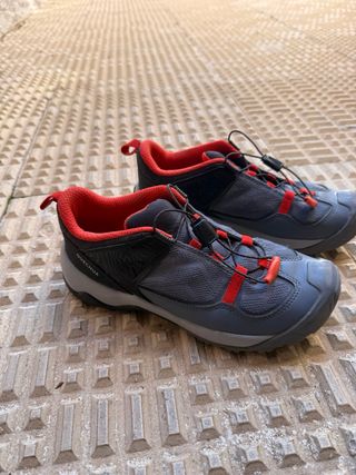 Zapatos de montaña con un diseño moderno y práctico. - Cierre rápido con cordones. - Detalle de tiras en color rojo. - Suela de goma.