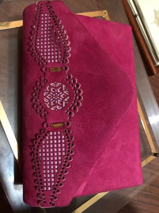Conjunto de bolso y zapatos a juego. - Bolso de ante. - Cierre con botón a presión. - Adorno de encaje en el lateral del bolso. - Zapatos a juego. talla 37