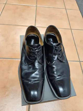Elegantes zapatos de vestir de cuero. - Diseño clásico. - Cierre con cordones. - Puntera cuadrada.