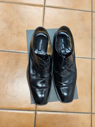 Elegantes zapatos de la marca Pitillos en color negro con detalles plateados y dorados. - Diseño moderno y llamativo. - Acabado brillante. - Cierre con cordones. - Suela nueva. - Llevados 3 o 4 veces. como se ve en las fotos están nuevos. - con la caja de compra original.