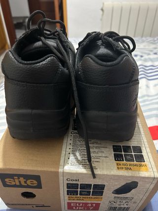 Zapatos de trabajo negros de la marca Site. Diseñados para ofrecer comodidad y protección. - Material exterior de cuero. - Suela de goma antideslizante. - Cierre de cordones.