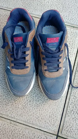 Zapatos de la marca Lois en tonos azul y marrón. Un diseño casual y cómodo. - Combinación de materiales. - Cierre con cordones.