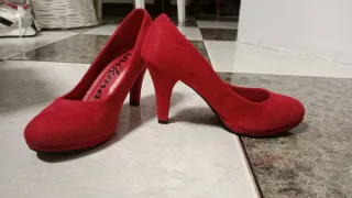 Zapatos plateados y rojos con tacón solo con dos puestas no más están en perfecto estado los vendo porque no me puedo poner zapatos con tacón. A 6€ cada uno.