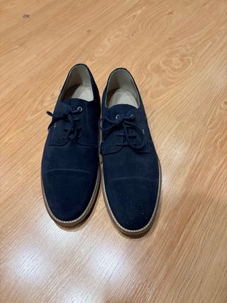 Elegantes zapatos de ante en color azul marino. - Material: Ante - Color: Azul marino - Talla: 40 Solo 2 usos. Me los regalaron pero no suelo usar ese tipo de zapato. Tienen la caja tambien.