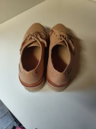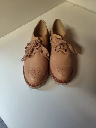 Elegantes zapatos de piel para mujer. Diseño con perforaciones. Combinación de tonos cuero y beige. Plataforma gruesa. Talla: 36. Marca: C- DOUS MENORCAComo nuevos. Cualquier duda consultar. Solamente ofrezco productos nuevos o en perfecto estado sin taras o defectos en caso contrario lo indicaría. Ver opiniones y visita mi perfil. Muchas gracias