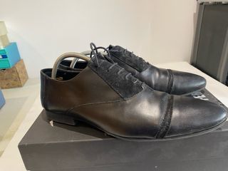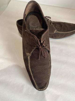 Elegantes zapatos de vestir para hombre. -Talla 45 normal. -Solo usados 2 horas en un evento.NUEVOS💯💯 - Diseño de cordones. - Material de ante. - Detalle de costuras en la suela.