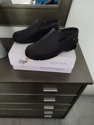 Zapatos sanitarios Dian blancos, muy cómodos y sin estrenar. Ideales para el trabajo. - Cierre de velcro. - Diseño perforado para mayor transpiración. - Suela antideslizante. 2 pares talla 41 y 1 par talla 42 Si te llevas los 3 pares son 70€