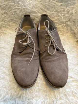 Zapatos de ante con cordones. - Material exterior de ante. - Cierre de cordones. - Diseño clásico. - Suela de goma. - Usado en contadas ocasiones