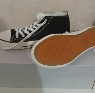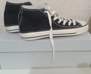 Zapatillas altas de lona en color negro. - Cierre con cordones blancos. - Suela de goma blanca. - Detalle de costuras blancas.
