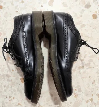 Zapatos de piel estilo oxford de Dr. Martens en color negro. Talla 41 de mujer. Poco utilizados porque me hacen daño en los pies. - Detalle de picado en los bordes. - Cierre con cordones.