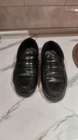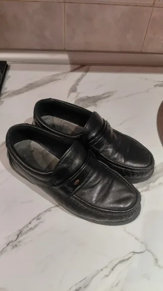 Zapatos de piel auténtica en color negro. - Material exterior de piel. - Cierre de velcro. - Suela antideslizante, piel interior y exterior. Fabricado España, nunca usado, precio en tienda 45€, se vende por 15€. Sin estrenar y etiquetas originales. Se pueden lavar, calidad superior