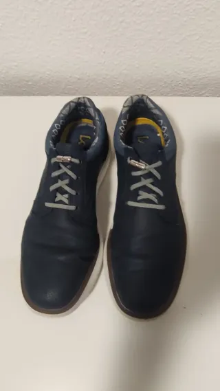 Zapatos de hombre, número 42, de la marca Lois. De color azul marino. Son muy flexibles y ligeros. Están usados, pero poco, pues me confundí en la talla y no estoy a gusto. Tienen su caja original y todo. Le cambié los cordones por unos elásticos que se abrochan sin nudo, pero si se quiere los puedo volver a poner, los otros.