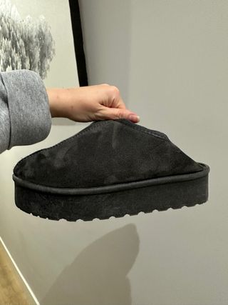 Estos zapatos de pelo son perfectos para mantener tus pies abrigados. - Material exterior de ante. - Suela gruesa y antideslizante. - Diseño cómodo y moderno.