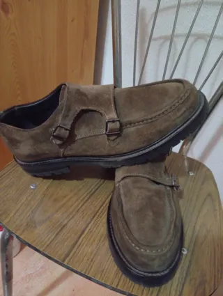 Elegantes zapatos de ante Massimo Dutti. - Diseño monk strap con doble hebilla. - Suela gruesa y resistente. - Acabado en ante.