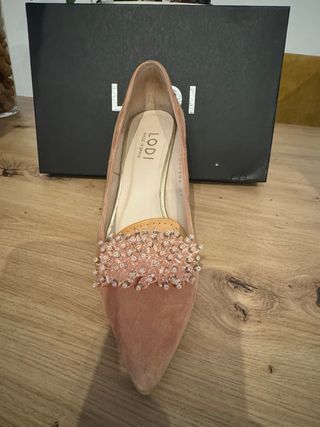 Elegantes zapatos de ante en color rosa de la marca LODI. - Material: Ante - Color: Rosa - Fabricado en España Aplique joya de quita y pon