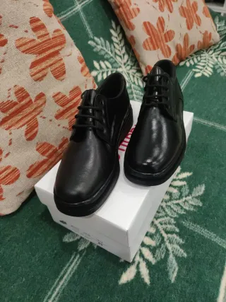 Vendo un par de zapatos planos con suela gruesa. Son de color negro y tienen un diseño elegante y cómodo. - Son ideales para el día a día. - La suela es resistente y proporciona una buena amortiguación. - Están en perfecto estado.