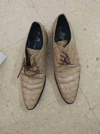 Elegantes zapatos de piel con un diseño texturizado que imita la piel de cocodrilo. Suela de cuero y zapatos de piel - Acabado en tonos beige y marrón. - Cierre con cordones.