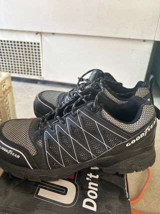 Calzado de seguridad Goodyear en color negro. Diseñados para ofrecer protección y comodidad. - Cierre con cordones. - Paneles de malla transpirable. - Puntera reforzada.
