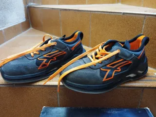 Zapatos de seguridad grises y naranjas