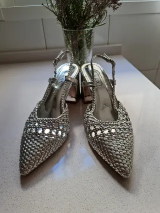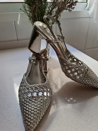 Zapatos plateados tejidos