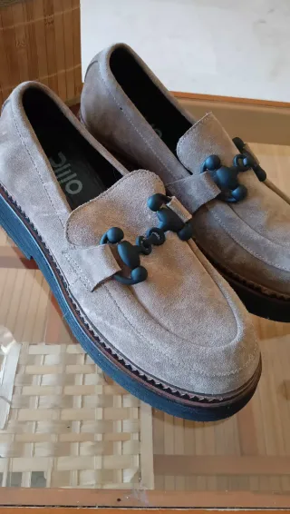 Zapato de ante y todo el interior de piel también. Buen estado, tienen poco uso. Talla 40/41.