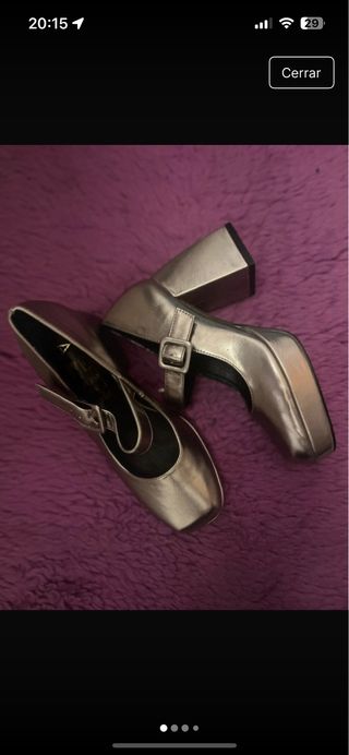 Zapatos plateados tacón plataforma y correa