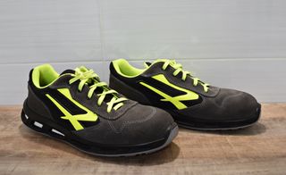 - Zapatos de trabajo seguridad U-Power en talla 47,5. - Diseño moderno con detalles en color verde neón. - Material exterior de ante gris. - Suela negra con detalles de ventilación. - Solo usados una vez para comprobar la talla. Se entregan en una caja diferente a la original.