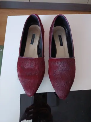 Elegantes zapatos de tacón en color burdeos. - Material tipo ante. - Punta fina. - Tacón de aguja.