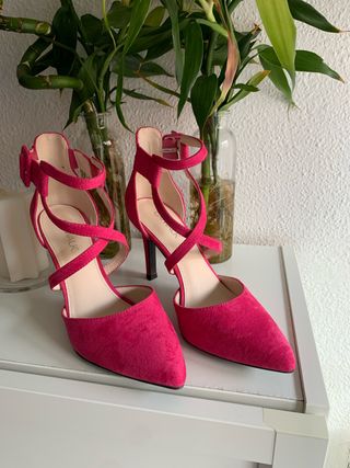 Elegantes zapatos de tacón en color buganvilla tal como en las fotos un poco más claro,son nuevos y cómodos ,pero ya no puedo llevar tacones por problemas de rodilla y pies son preciosos los compré para una boda que no pude ir . Envío solo Im post seur o correos - Diseño moderno sin pasar de moda - Tacón de altura media.