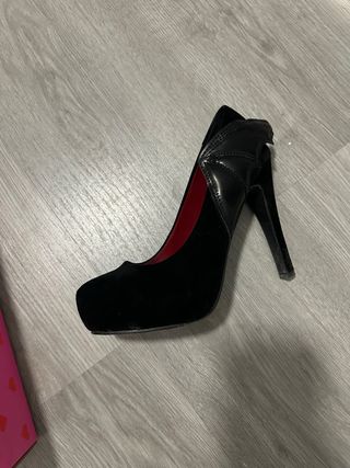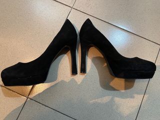 Elegantes zapatos de tacón alto en color negro. Un clásico que no puede faltar en tu armario. Nuevos sin usar. 10cm de tacón 2cm de plataforma. Marca desconocida. - Diseño de tacón alto. - Acabado en color negro.