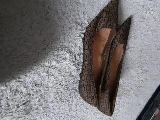 Elegantes zapatos de tacón con un diseño estampado. - Color marrón. - Talla 39. - Estampado de la marca en toda la superficie.