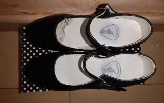 Zapatos de flamenco para niña en color negro. Han sido usados una sola vez. - Cierre con hebilla. - Tacón bajo.