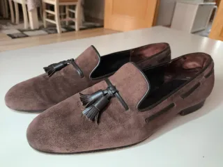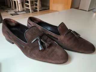Elegantes zapatos de ante en color marrón. - Diseño con borlas (tassel). - Material: Ante. - Marca: Barker.