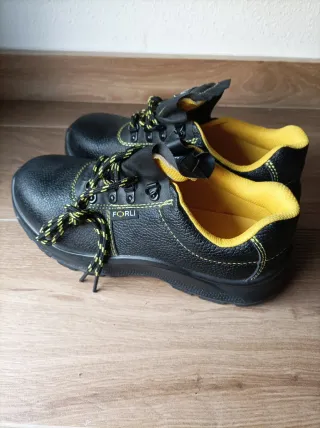 Zapatos de seguridad de la marca FORLI. Nuevos con etiqueta - Color negro con detalles en amarillo. - Cierre con cordones.