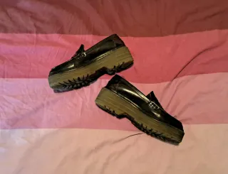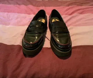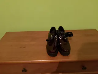 Zapatos de charol con suela de plataforma. - Diseño moderno y brillante. - Acabado pulido.