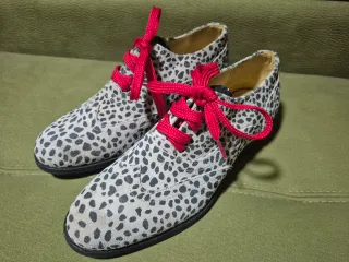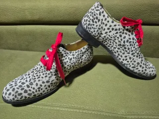 Zapatos bajos con un llamativo estampado animal print y cordones rojos. - Diseño de corte bajo. - Cordones de color rojo brillante. - Estampado de manchas en beige y negro. - Piel auténtica.