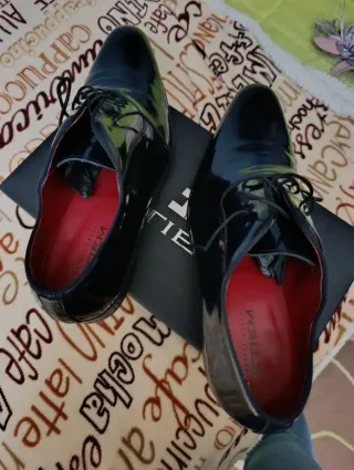Zapatos de vestir de piel, de la marca Emidio Tucci. Una sola puesta para un evento, estado perfecto. Calidad - Diseño elegante y sofisticado. - Acabado brillante. - Cordones para un ajuste seguro.